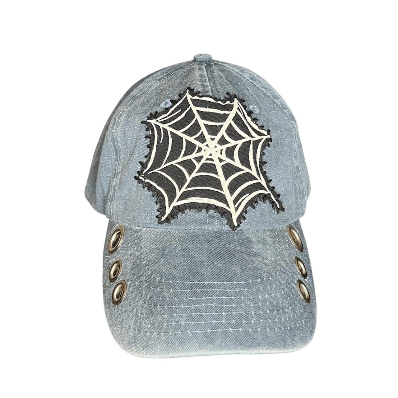 • includes a spider web patches and grommets along the brim •