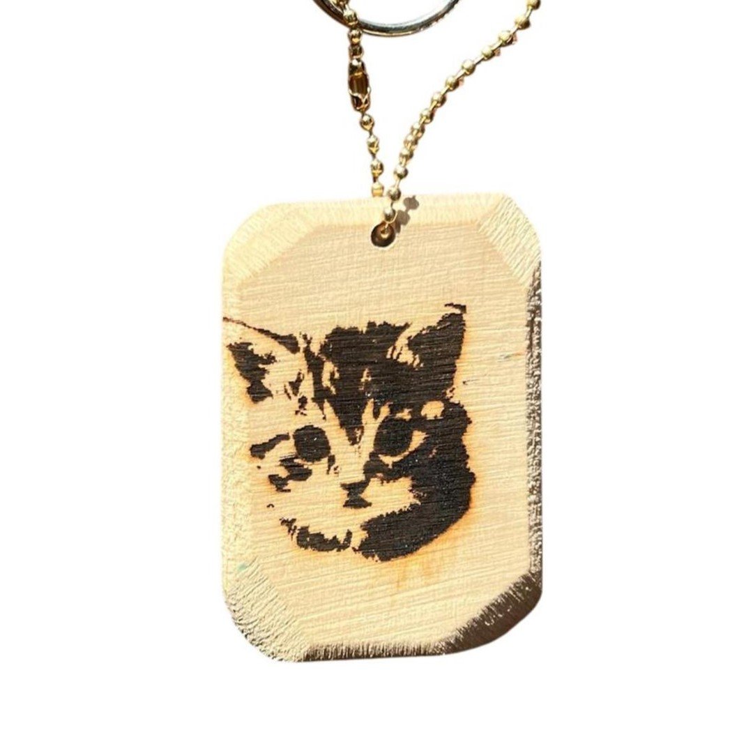crafted from recycled skateboards • laser engraved graphic • roughly 1.5x2.25 inches •